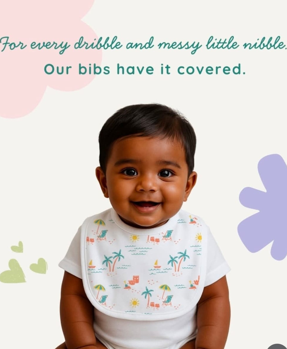 Meal times can be messy, especially when little ones are learning to eat. We hear you mums, and bring you muslin bibs with snap buttons at the back.
